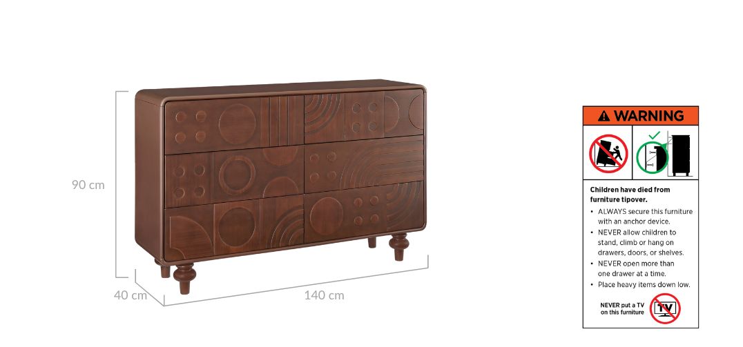 Your safety is our utmost priority. To prevent accidents, we strongly recommend securely anchoring your furniture using the provided wall straps. Detailed step-by-step guidance can be found in your assembly instructions. For further information on compliance and best practices, please review: Consumer Goods (Toppling Furniture) Information Standard 2024 and Toppling furniture mandatory information standard – supplier guide | ACCC Product Safety