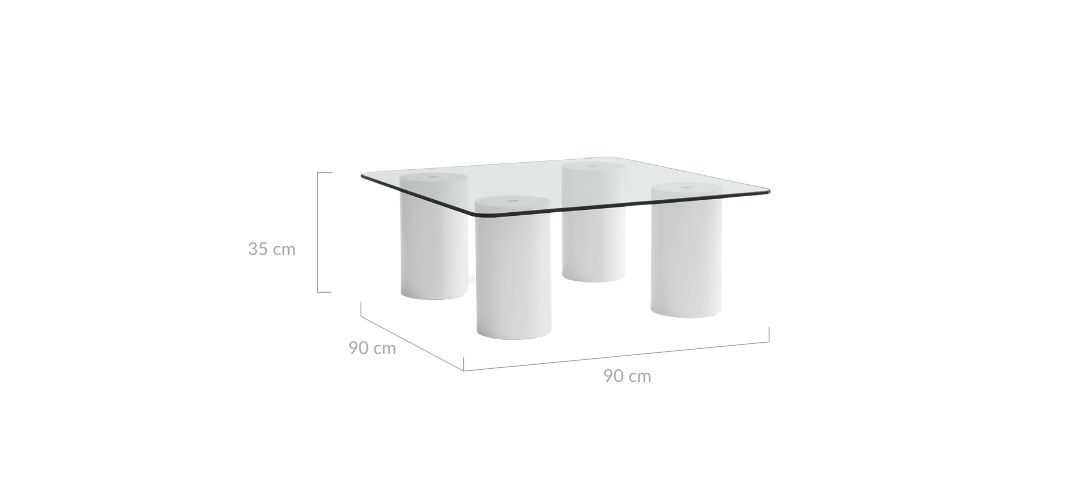 The bold pillar legs and softly rounded tabletop make the Gabriel glass coffee table a functional piece of art.