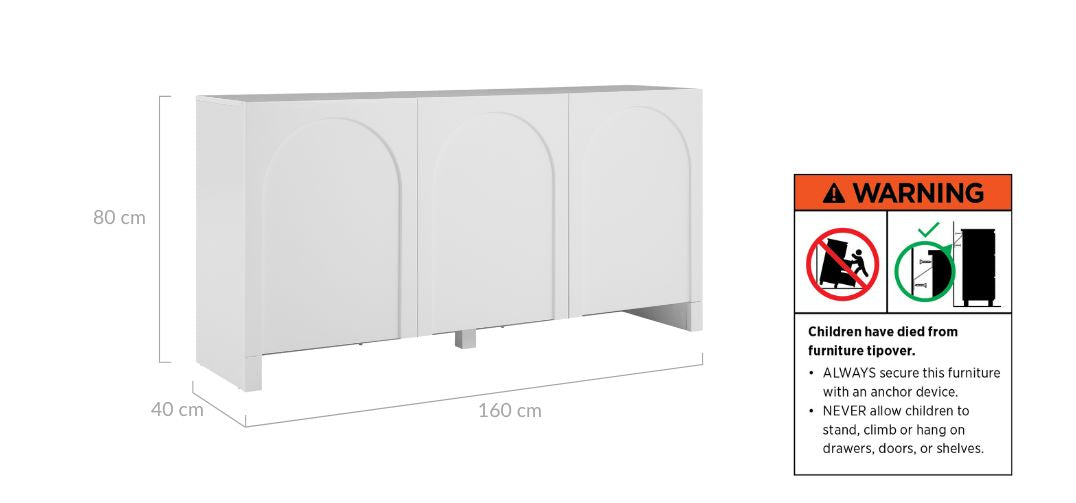 Your safety is our utmost priority. To prevent accidents, we strongly recommend securely anchoring your furniture using the provided wall straps. Detailed step-by-step guidance can be found in your assembly instructions. For further information on compliance and best practices, please review: Consumer Goods (Toppling Furniture) Information Standard 2024 and Toppling furniture mandatory information standard – supplier guide | ACCC Product Safety