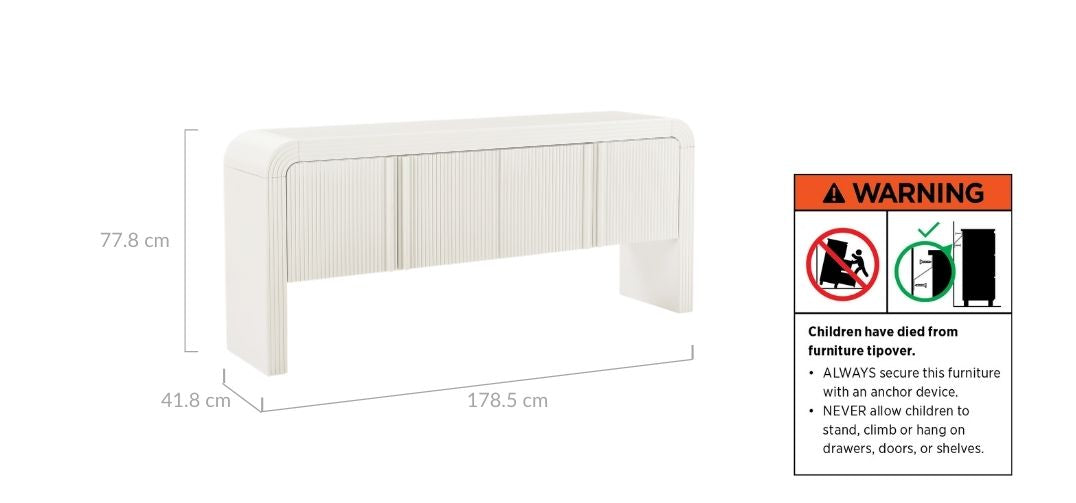 Your safety is our utmost priority. To prevent accidents, we strongly recommend securely anchoring your furniture using the provided wall straps. Detailed step-by-step guidance can be found in your assembly instructions. For further information on compliance and best practices, please review: Consumer Goods (Toppling Furniture) Information Standard 2024 and Toppling furniture mandatory information standard – supplier guide | ACCC Product Safety