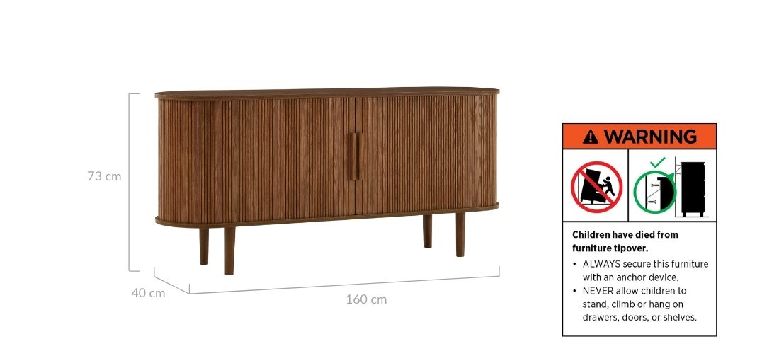 Your safety is our utmost priority. To prevent accidents, we strongly recommend securely anchoring your furniture using the provided wall straps. Detailed step-by-step guidance can be found in your assembly instructions. For further information on compliance and best practices, please review: Consumer Goods (Toppling Furniture) Information Standard 2024 and Toppling furniture mandatory information standard – supplier guide | ACCC Product Safety