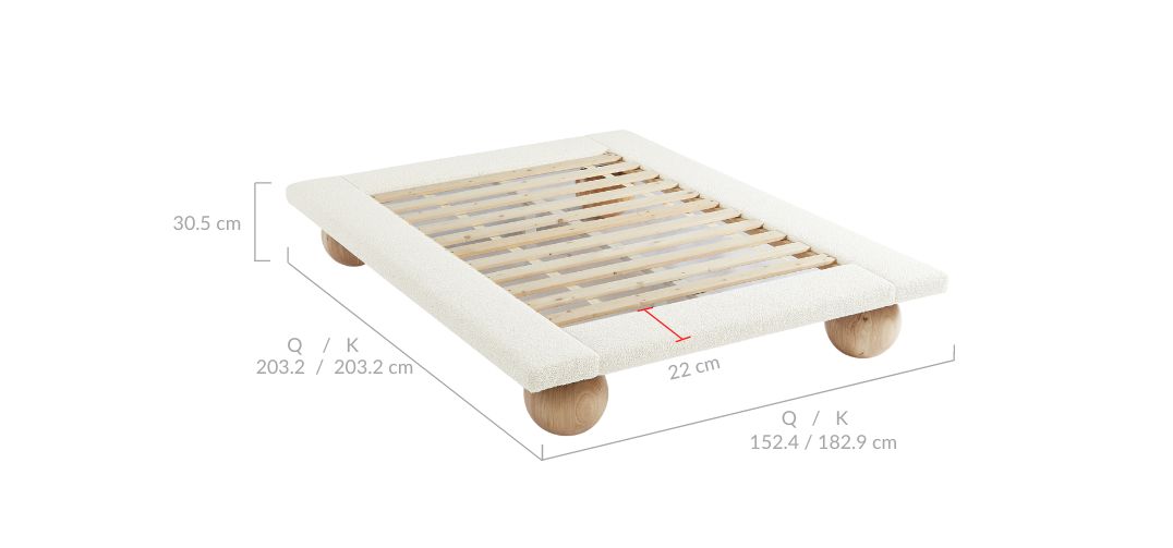 The soft boucle fabric on the bed frame will help keep your tibia safe, while the ball-shaped legs allow the Ballico bed frame to slide effortlessly for easy cleaning.