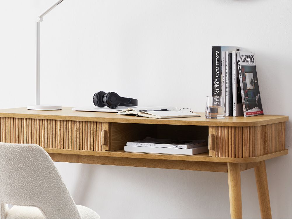Patterns are a great way to bring interest to your room without creating clutter. The ribbed pattern on the side of our Nordic desk was chosen to keep your space feeling bright and airy.